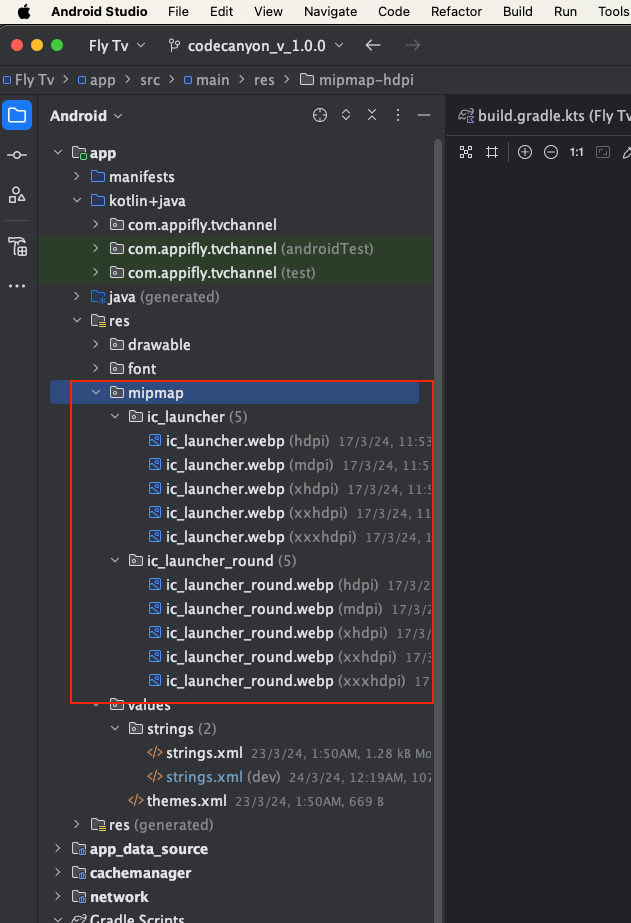 Navigate to the "mipmap" directory located in the "res" folder of your Android project.